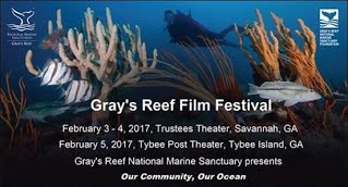 14th annual Gray's Reef Film Festival!Thursday, February 2 - Sunday, February 5, 2017in Savannah AND now, on Tybee Island!Last year we brought Savannah's first underwater 3D films to town and it was a smashing success. So, we've added a second full night of films, both nights will be at the Trustees Theater! And... we're presenting a Sunday matinee at the Tybee Post Theater with award winning films courtesy of the San Francisco Ocean Film Festival. This year's festival will again feature inspiring films from local, national, and emerging filmmakers with the aim to instill marine conservation and ocean stewardship in Georgia’s coastal residents. These films allow us to explore the creatures and beauty of the sea, the complexity of the marine ecosystem, and our maritime heritage. We believe our relationship with the ocean is crucial to sustaining a healthy environment for Georgia’s underwater treasure: Gray’s Reef. Therefore, our theme this year is “Our Community, Our Ocean.” In what ways do we impact the ocean? In what ways does the ocean influence our community? And, on the live entertainment front, you won't want to miss this year's VIP Founders' Party. If the techno-gods are with us, YOU will come as close to experiencing a dive on Gray's Reef as is possible without getting wet! Want a hint? Okay, what comes between 3D and actual reality? Check out this year's film schedule and trailers Register for shows and tickets to GRFF events! We'll be featuring our sponsors here starting in January. So, if you'd like to join us, either as a business or individual sponsor, please visit our Sponsorship Opportunities Program In 2016, the festival drew a wide audience of over 2,500 attendees. Now in our 14th year, Gray's Reef National Marine Sanctuary and the Gray’s Reef National Marine Sanctuary Foundation are once again teaming up to share the wonders of the sea with Savannah and audiences from across Coastal Georgia. Check back in January for more details and don't forget, you can stay in touch with Gray's Reef foundation by subscribing to our newsletter or make a donation to support local stewardship of our great ocean! And don't forget to visit us on Facebook! Friday, Saturday, and Sunday matinee film showings: $10 adults, $5 children Thursday VIP Founders Party at 24e: $60 Saturday night After Party at 45 Bistro: $25 Sunday Sunset Wrap Party at North Beach Bar & Grill: $25 |